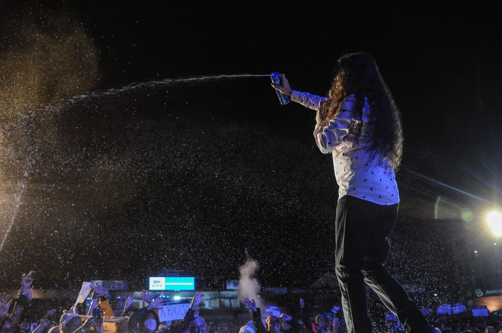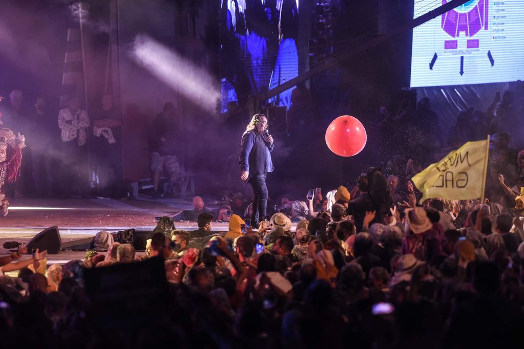 A esa altura, el clima de fiesta se había instalado completamente y las últimas butacas de la platea presentaban varios claros por una simple razón: mucha gente se había ubicado en los pasillos y sobre las sillas para poder disfrutar del show del riojano en medio de infinitas nubes blancas que salían disparadas por los aires. La promesa del carnaval se había cumplido, incluso en la última madrugada de enero.