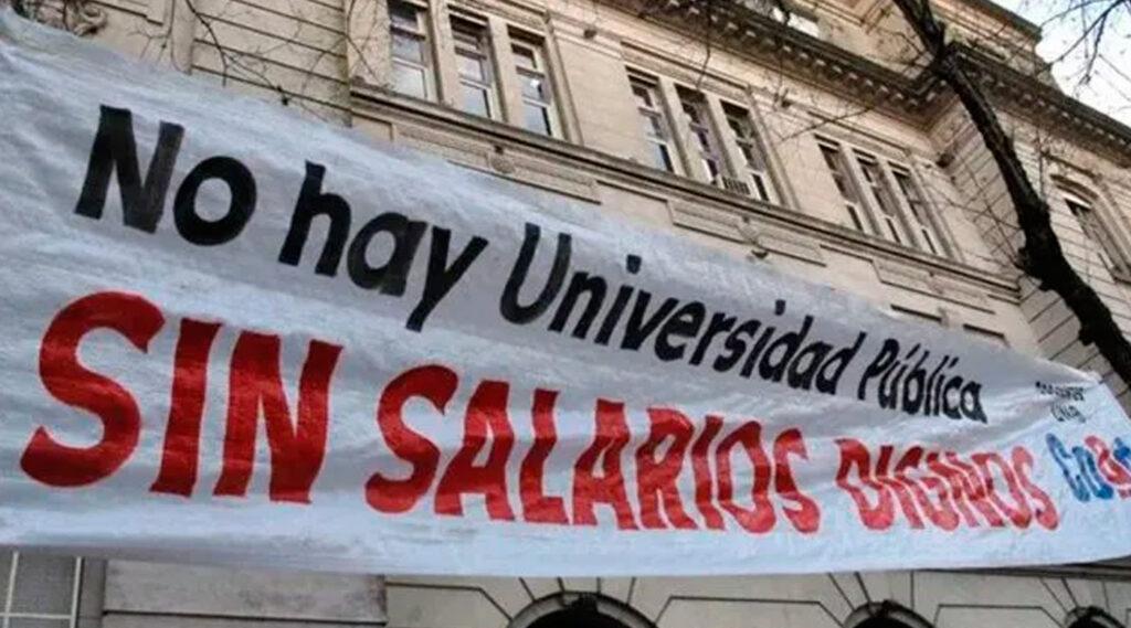 La medida fue impulsada por diversos gremios docentes que denuncian un fuerte deterioro en los ingresos y cuestionan el incumplimiento de la Ley de Financiamiento Universitario. Según sostienen, la normativa aprobada por el Congreso establecía una recomposición salarial acorde al impacto de la inflación acumulada durante el último período, pero hasta el momento el incremento no fue aplicado.